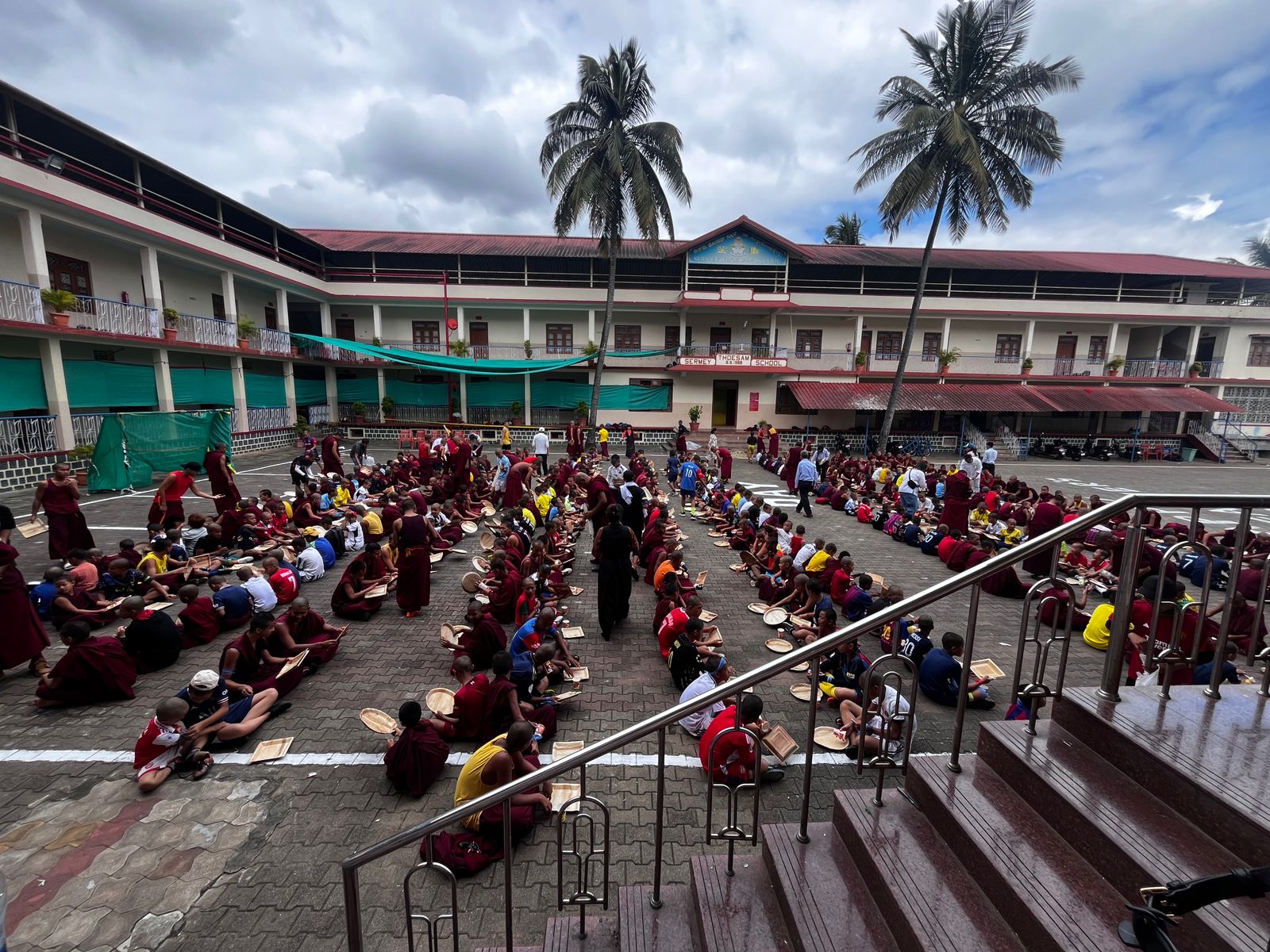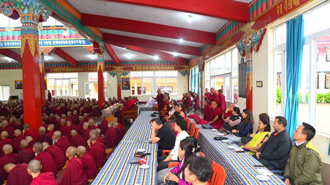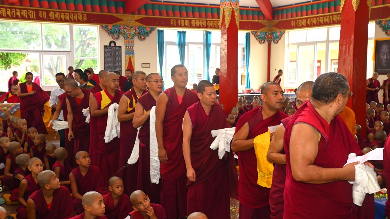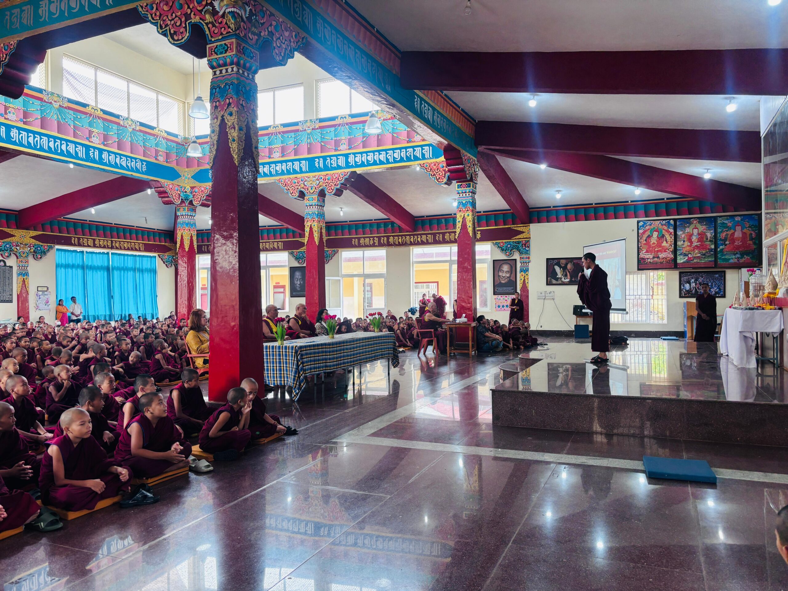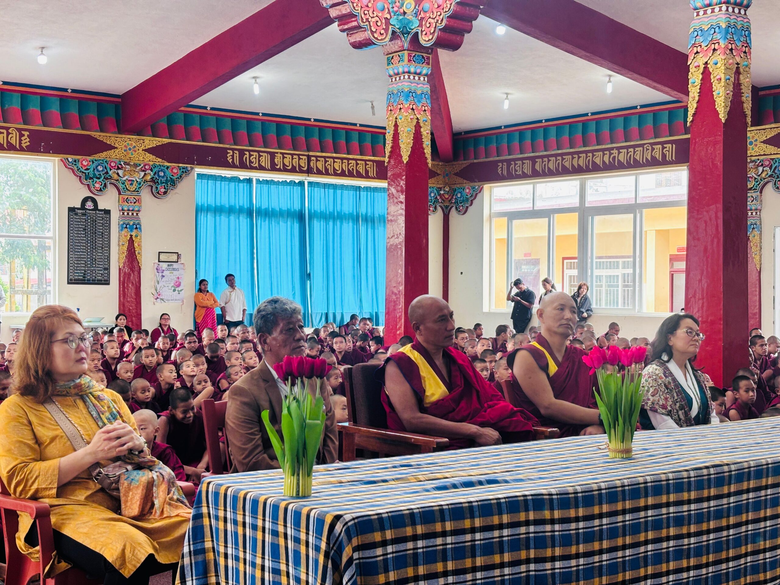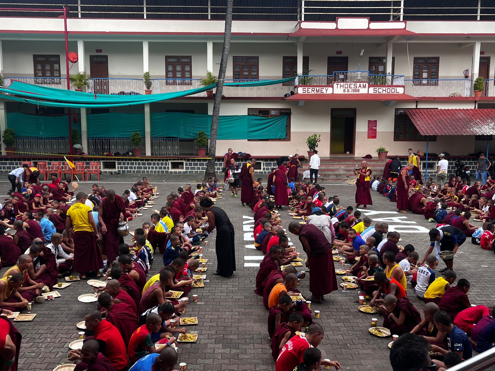 The delegation was warmly received with a traditional scarf welcome by the students and staff, led by the new Abbot of Sermey Thoesam School, Neten Tulku Tenzin Gelek Rinpoche, and the School Principal.