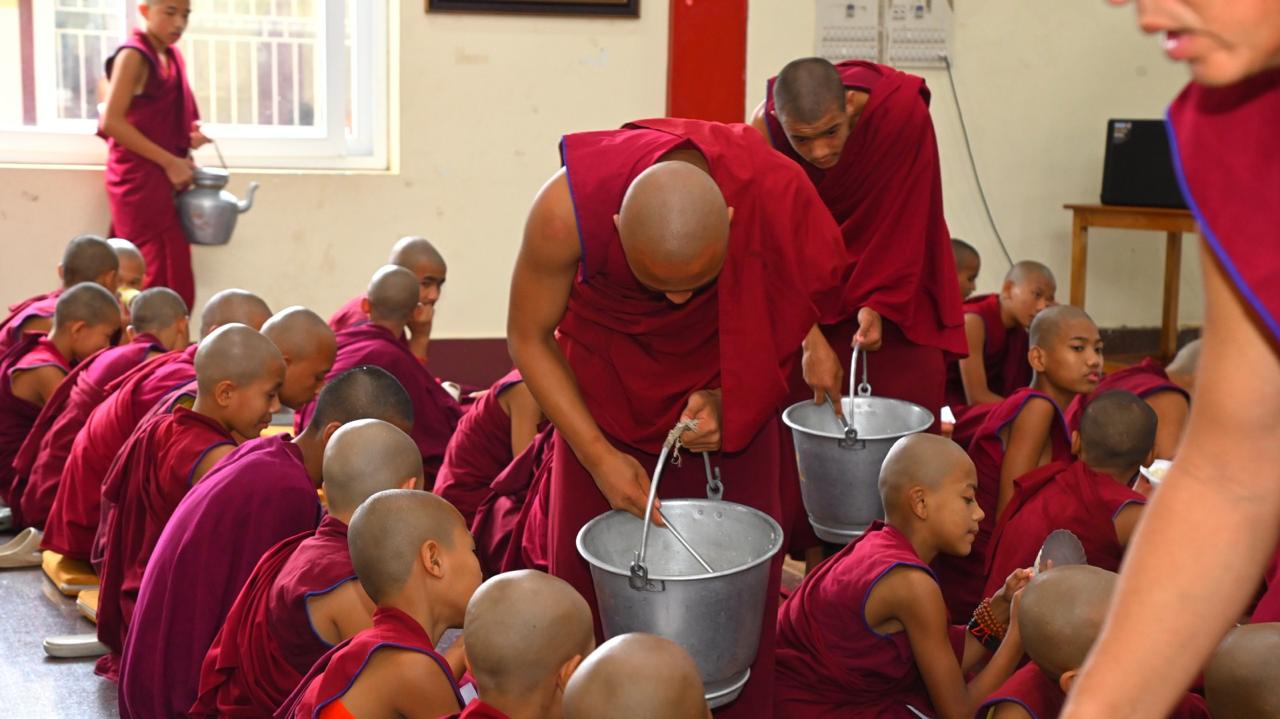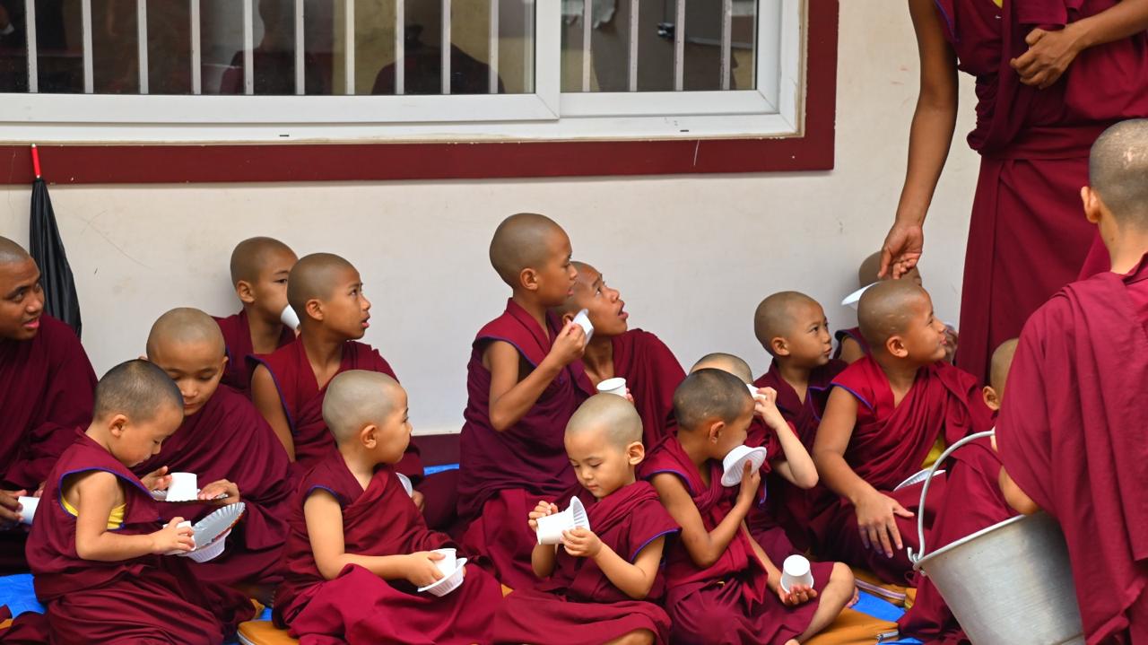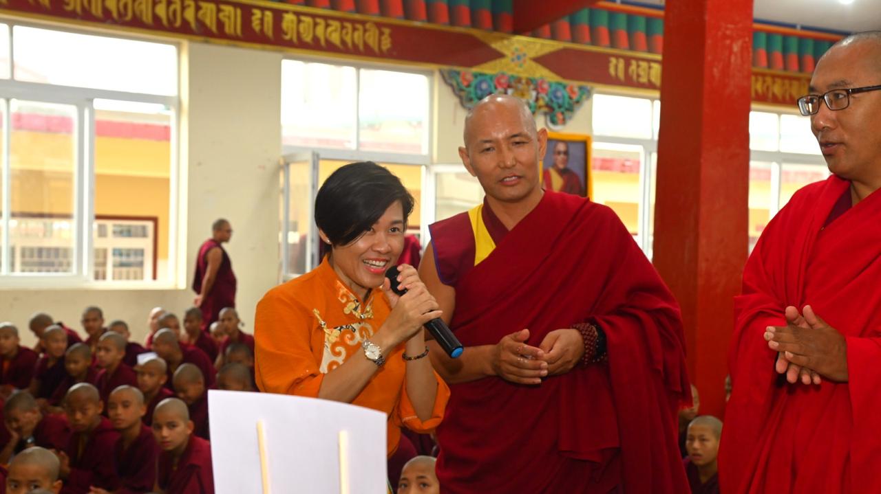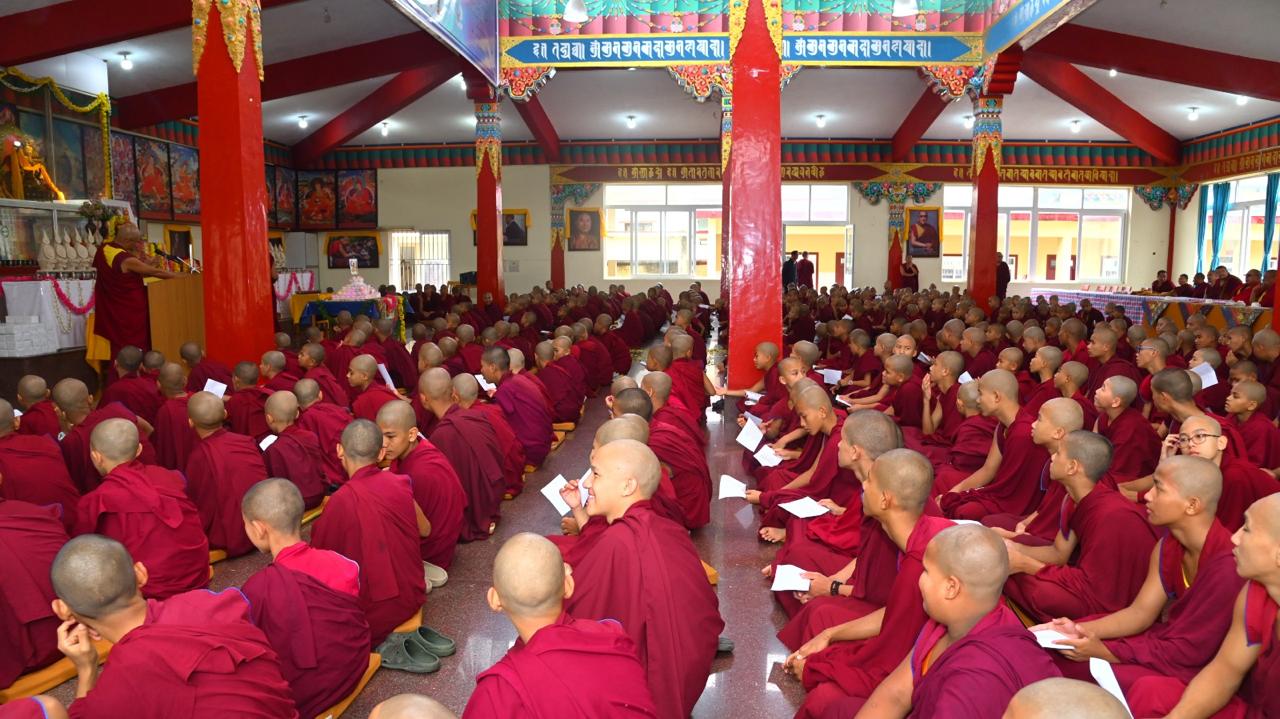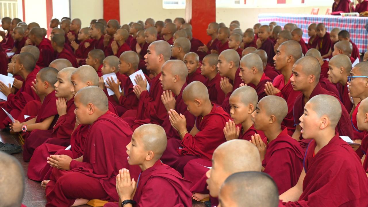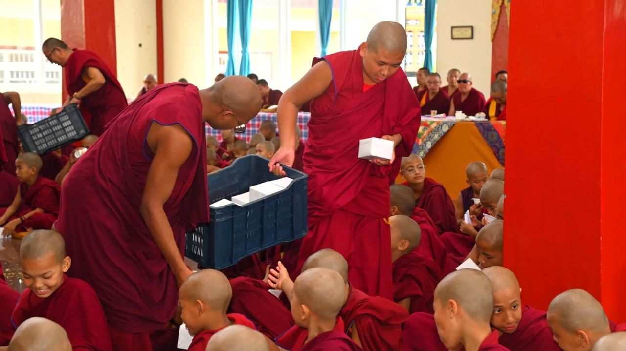 The delegation was warmly received with a traditional scarf welcome by the students and staff, led by the new Abbot of Sermey Thoesam School, Neten Tulku Tenzin Gelek Rinpoche, and the School Principal.