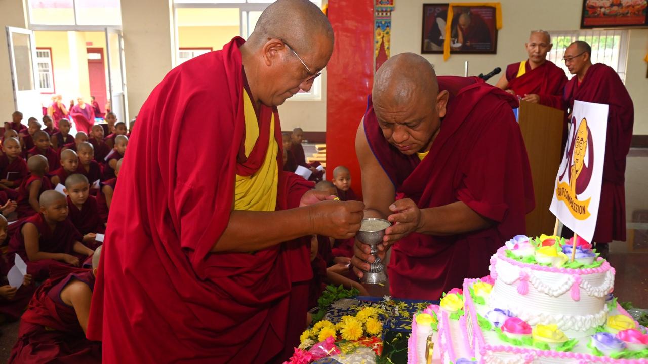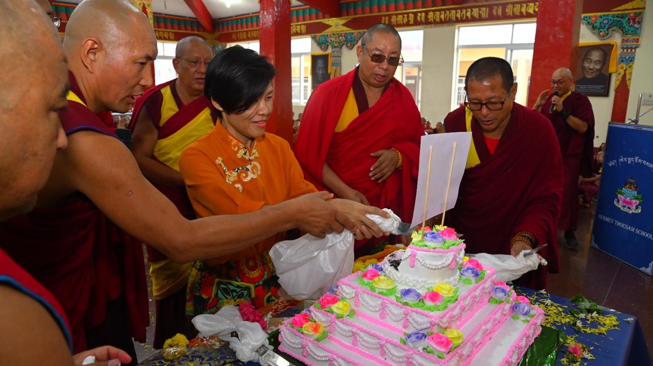 On July 5th, 2025, Sermey Thoesam School joyfully celebrated the 90th birthday of His Holiness the 14th Dalai Lama in the school auditorium. The event was graced by the Deputy Abbot, Geshe Lobsang Dhondup, as Chief Guest, along with the Disciplinary Master, Head Chanter, Head Treasurer, esteemed sponsor Mrs. Miaw Jiz Ling, teachers of the 13 Houses, staff, and students.